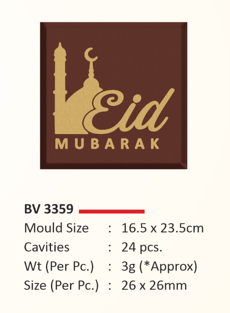 Add a festive touch to your chocolates with this Eid Decorative Transfer Mould. Perfect for Eid gifting, desserts, and celebrations.