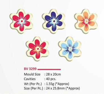 A colourful flower-shaped mould set designed to make small chocolate pieces with neat floral patterns. Easy to use and suitable for decorating cakes, desserts, and gift boxes.