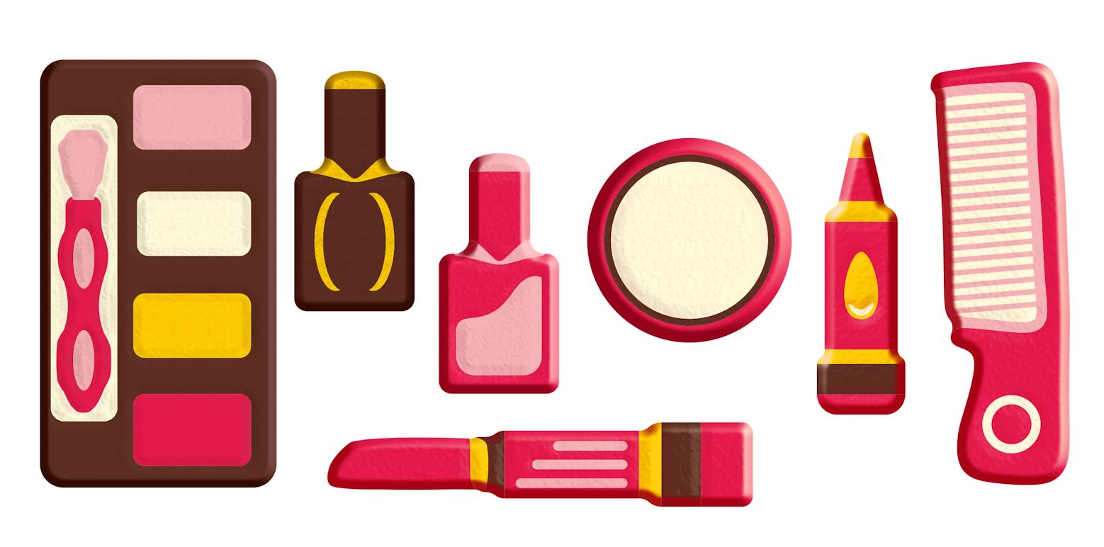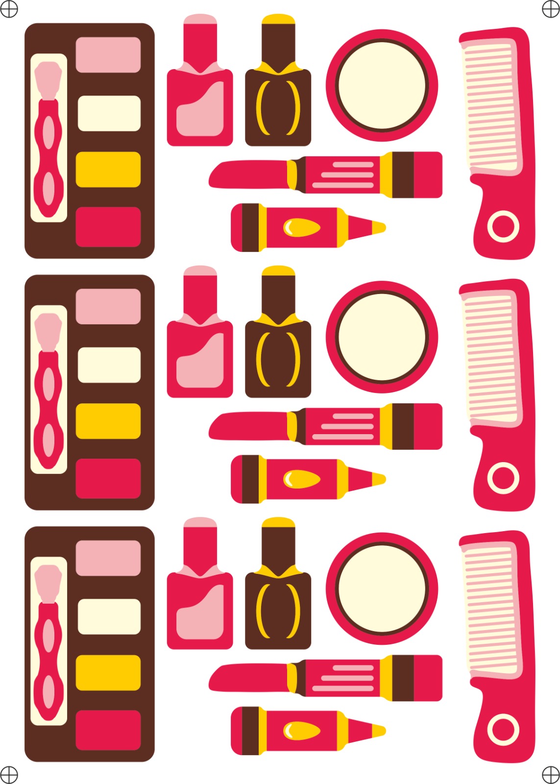 A fun makeup-themed transfer mould featuring cute cosmetic designs. Perfect for decorating chocolates, cakes, and dessert toppers.