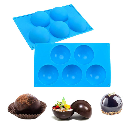 FineDecor Semi Sphere Silicone Non Stick Molds, 5 Cavity Chocolate Mould, Baking Mold for Making Hot Chocolate Bombs,Cake,Jelly,Dome Mousse (FD 3185)