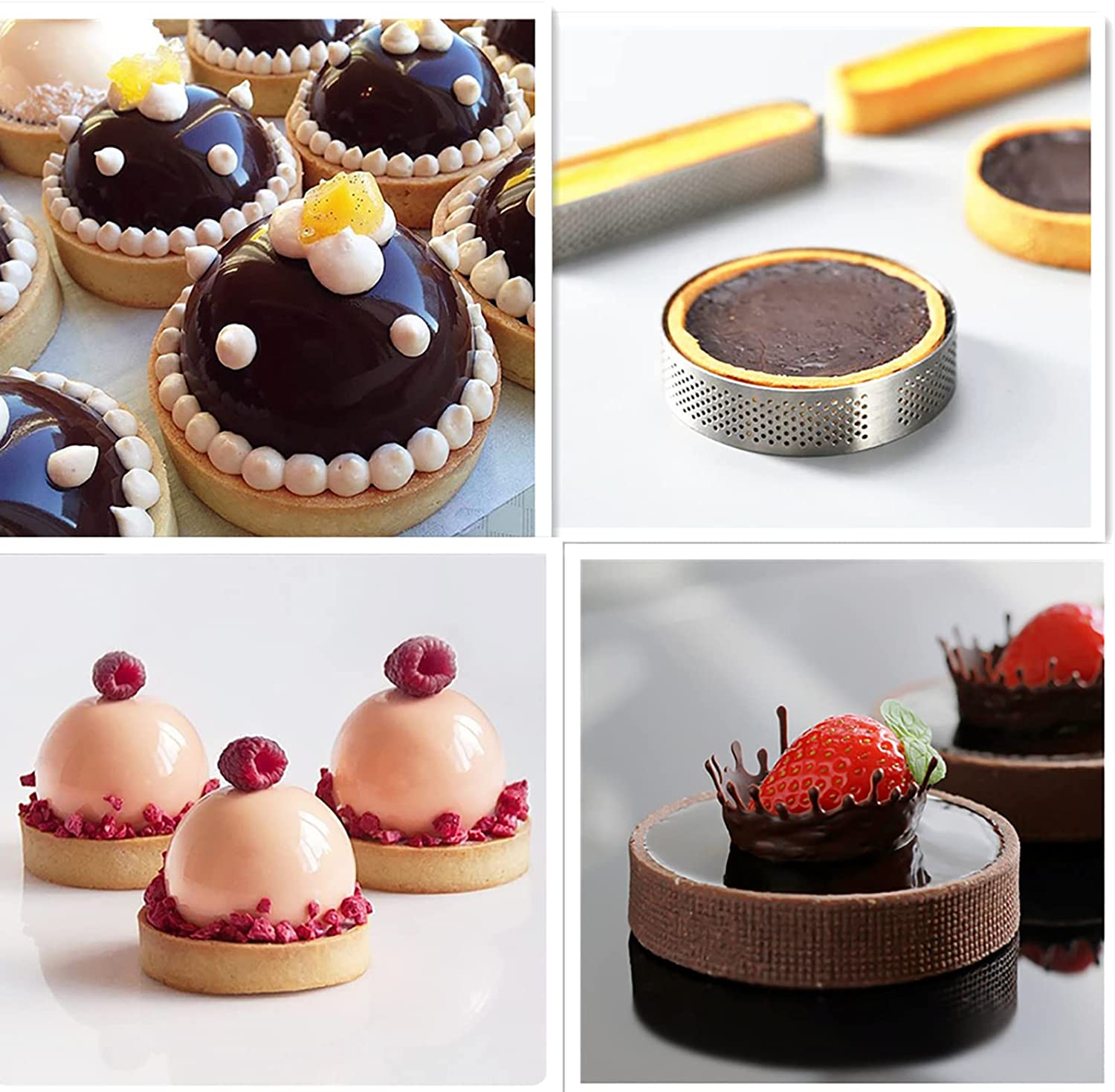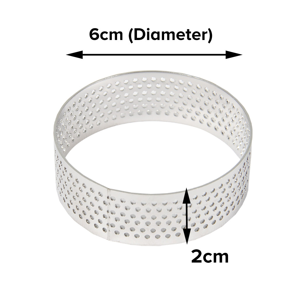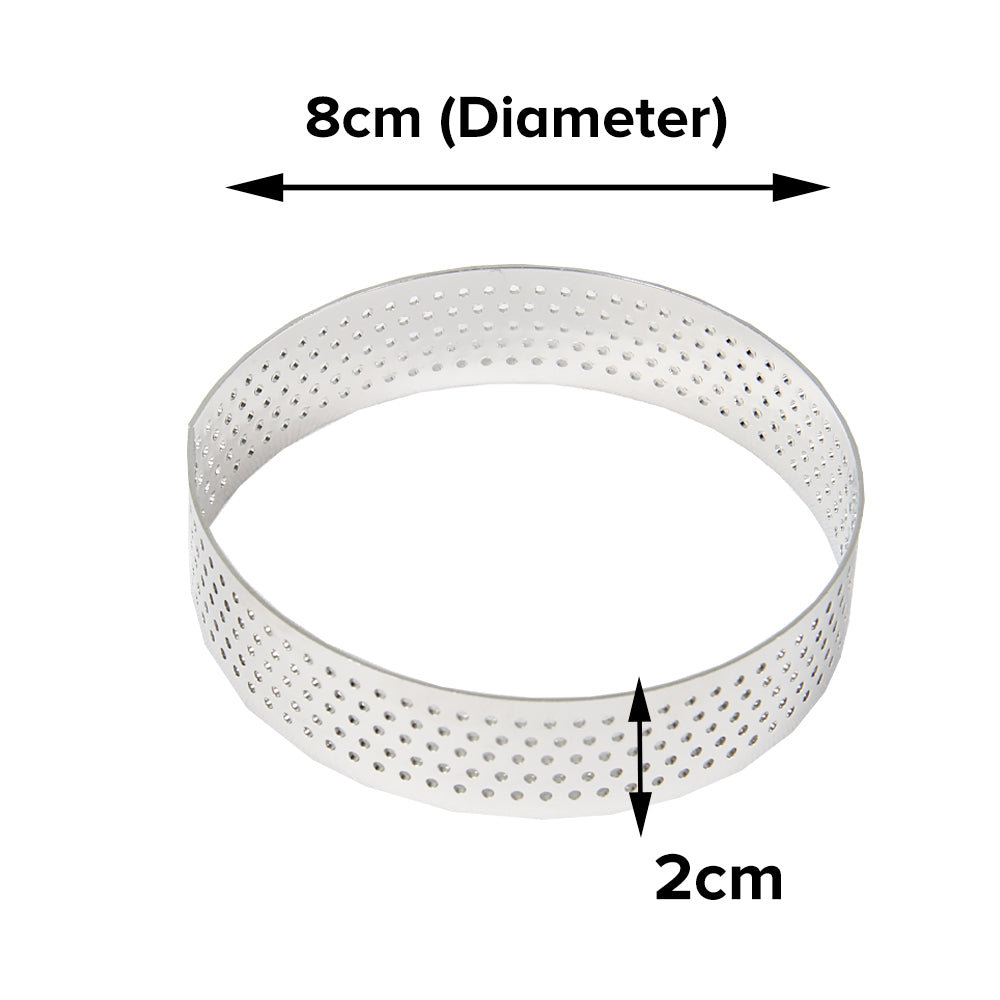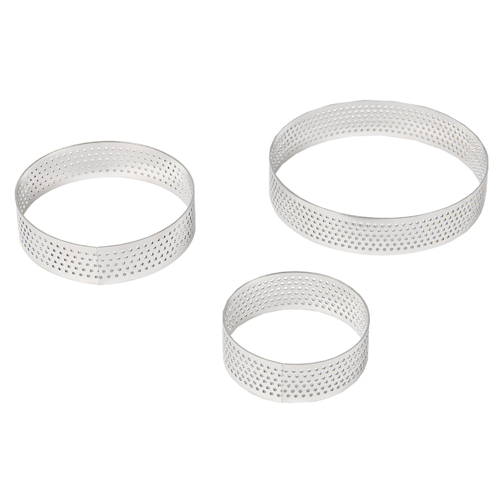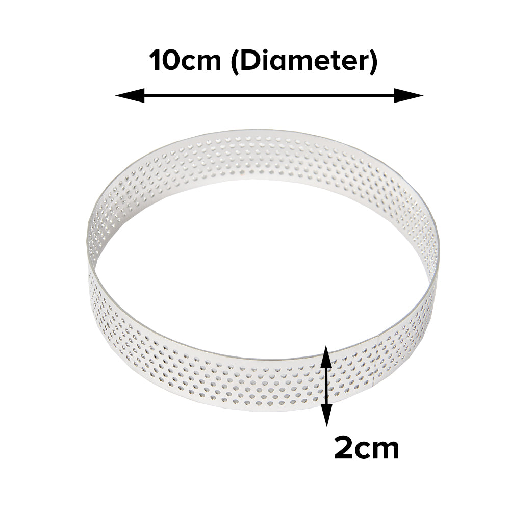 • Perforated Valrhona Tart Ring: Steam evaporates through holes; great for heat conduction