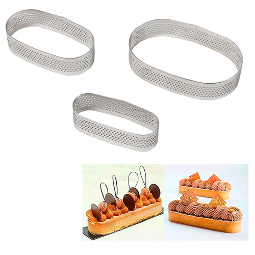 FineDecor Perforated Oval Shape Tart Ring - Stainless Steel Tart Ring for Baking 3 Pieces Set ( 2.5 * 1 in, 3 * 1.5 in, 3.5 * 2.5 in ) - FD 3308